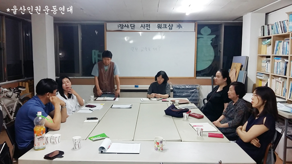 일시 : 7월 20일 (수) 장소 : 울산인권운동연대 사무실 내용 : 울산인권운동연대 사무실에서 울산인권교육센터 <7월 강사단워크샵>이 있었습니다. 7월에 진행되었던 인권교육에 대해서 토론하는 시간을 가지고 인권교육에 필요한 사안들을 논의했습니다.