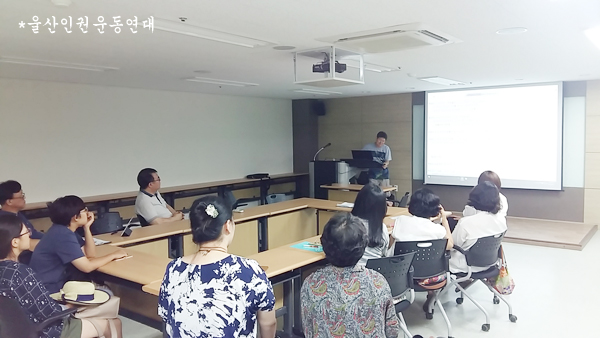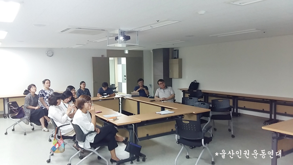 일시 : 8월 17일 (수) 장소 : 장애인기업종합지원센터 울산지역센터 내용 : 장애인기업종합지원센터 울산지역센터에서 울산인권운동연대 강사단은 인권교육에 필요한 정보를 공유하고 배우기 위해 인권교육강사단 워크샵을 했습니다.